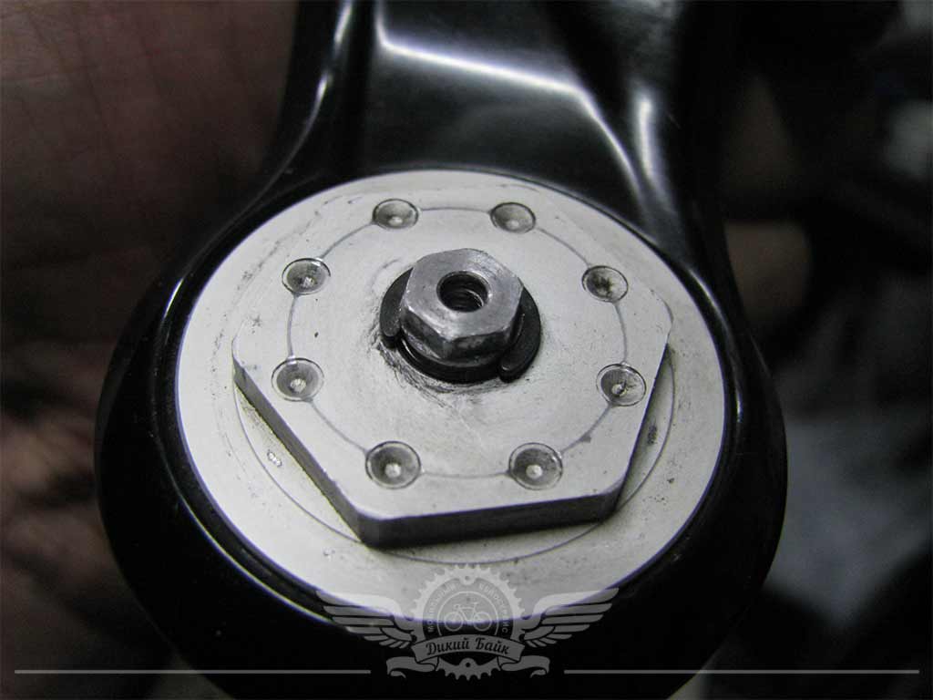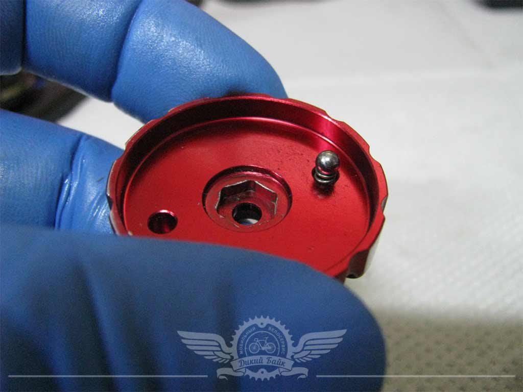 Владелец утерял шарики, которые позволяли крышке топкэпа "щелкать" при выборе натяга пружины. Это удобно при регулировке - можно щелкать нужное кол-во раз и смотреть как ведет вебя байк. Подошел шарик размером 1/8.