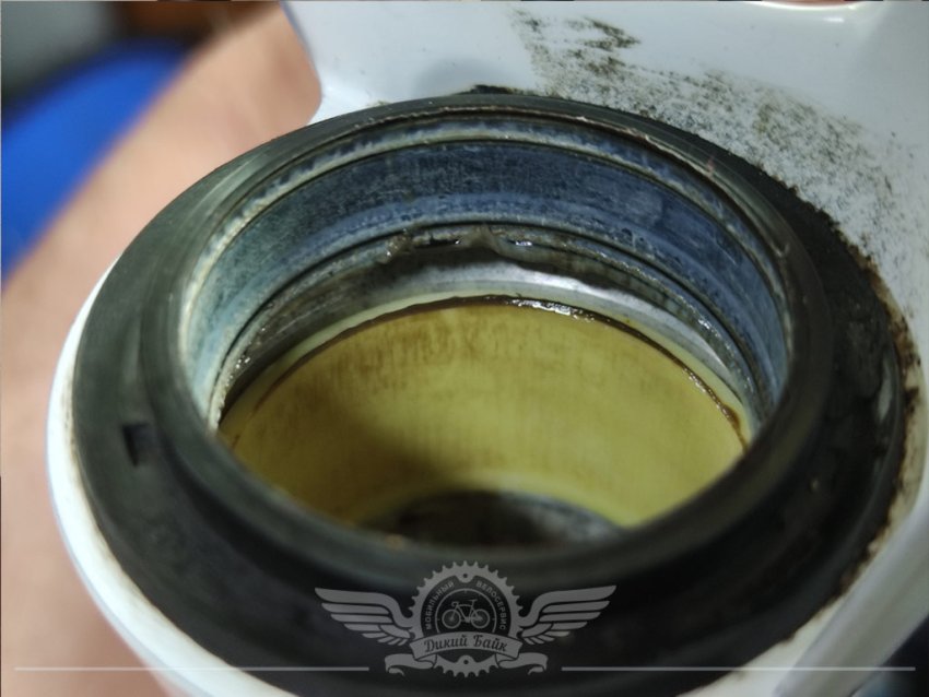 У меня масло с небольшим кол-вом мусора, но светлое, учитывая, что велосипеду и вилке больше 12 лет.