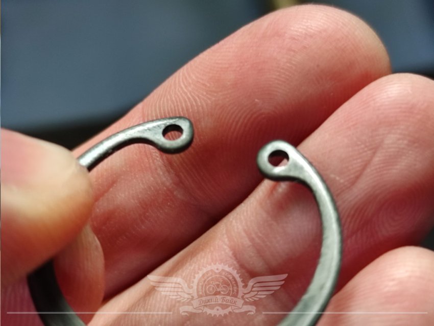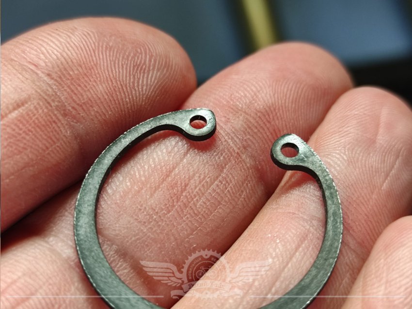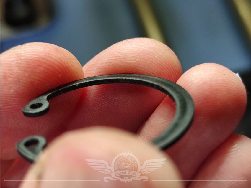 Обратите внимание на стопорное кольцо. У него одна часть острая, а вторая сглаженная.