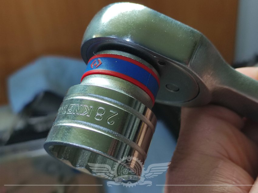 Головкой на 28 откручиваем топкэп (верхнюю крышку). Вы же не пропускали инструкцию и предварительно спустили воздух? Иначе будет БУМ!!!