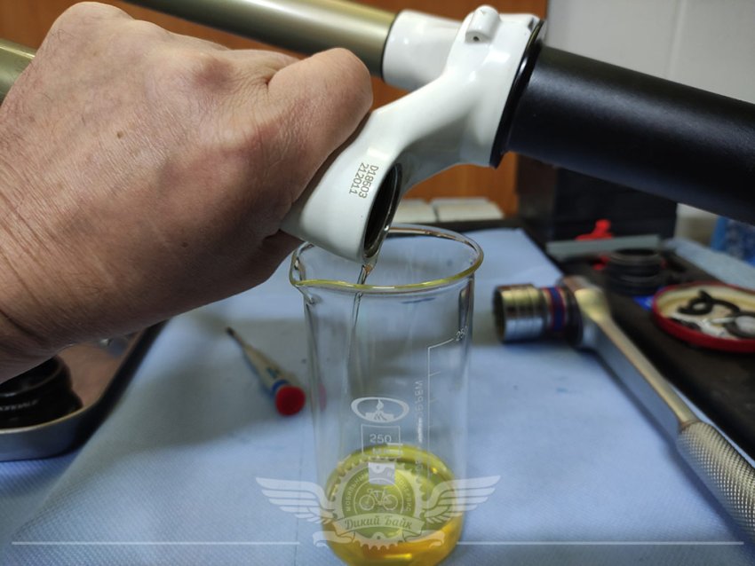 Заливаем 5 мл масла в воздушную камеру. Поднимаем вилку.