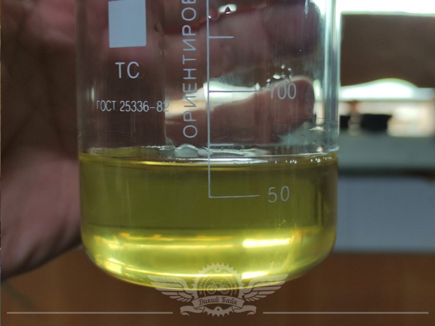 Сливаем масло в подготовленную емкость, чтобы увидеть цвет и измерить объем.