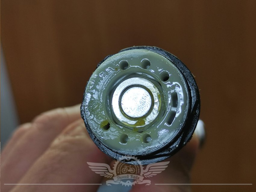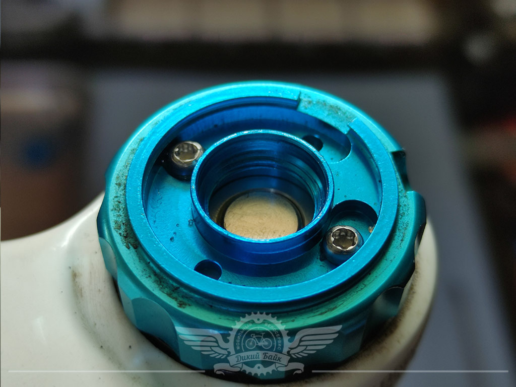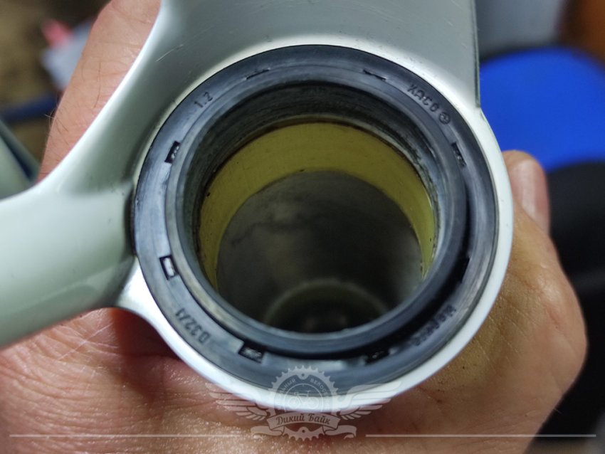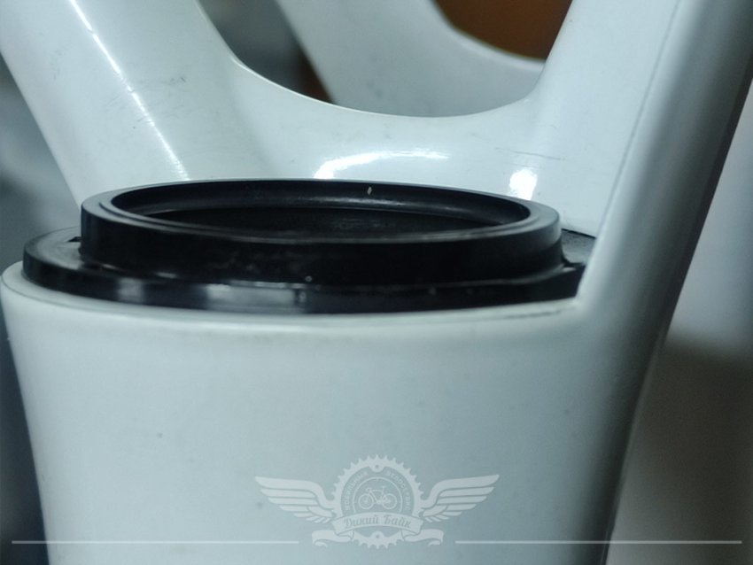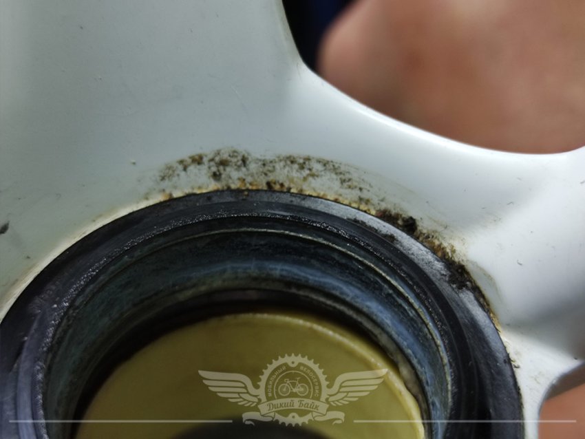 Самое время посмотреть на состояние пыльников-сальников и бушингов (направляющих). Обратите внимание, что в вилке нет поролоновых колец. Это потому, что в вилках Magura используется только консистентная смазка, как и у SRSuntour и не применяется масло в штанах для смазывания (смачивания) ног вилки. Некоторые пользователи при обслуживании дополнительно ставят поролоновые колечки пропитанные маслом в штаны этой вилки по аналогии с другими производителями, но целесообразность данного решения ближе к перестраховке. Лучше обслуживать вилку по регламенту, а не городить колхоз. Хотя боюсь быть "обласканым" членами клана поролоновых колец.