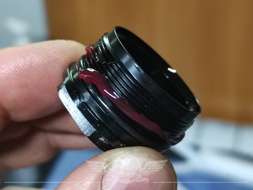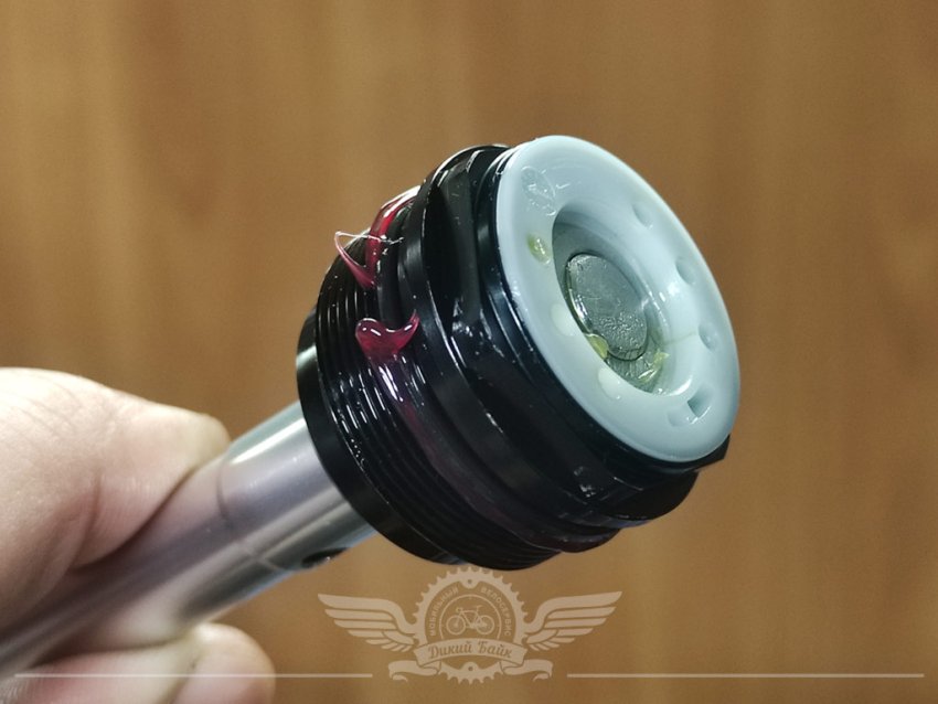 Смазываем консистентной смазкой PM600 нижний, верхний оринги и резьбу масляного демпфера и закручиваем его без усилия.