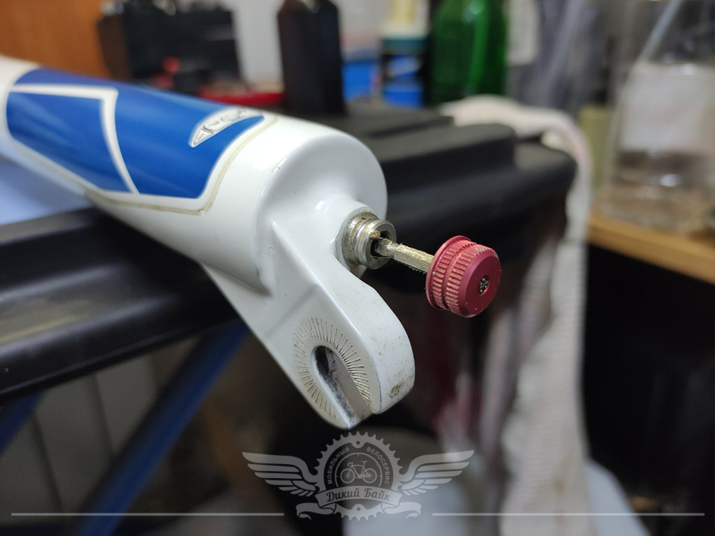 Прошу обратить внимание на шестигранное отверстие в конце штанов. Такое отверстие есть на обеих торцах штанов вилки, откуда мы и выкрутили ранее болты. Далее поймете почему.